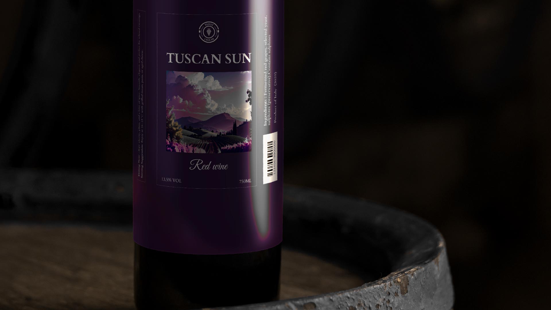 Created for modern wine lovers who appreciate authenticity and craftsmanship, The Tuscan Sun blends rustic charm with contemporary sophistication. Its label design, featuring a glowing Tuscan landscape beneath a radiant sunset, evokes warmth, connection, and the enduring beauty of the vineyard. Whether enjoyed with grilled meats, pasta, or aged cheese, this 13.5% Italian red invites you to taste the soul of Tuscany — one glass at a time.